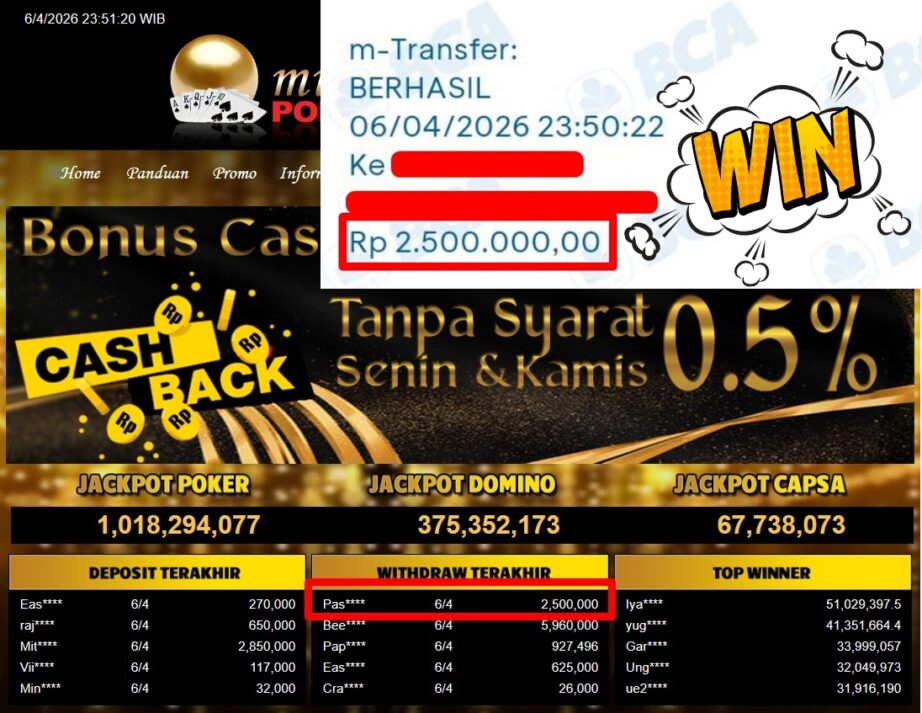 Bukti Withdraw ( 2.500.000,-) Member Setia Mutiarapoker