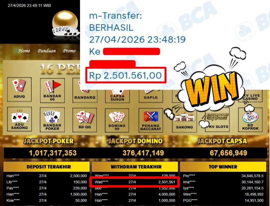 Bukti Withdraw ( 2.501.561,-) Member Setia Mutiarapoker