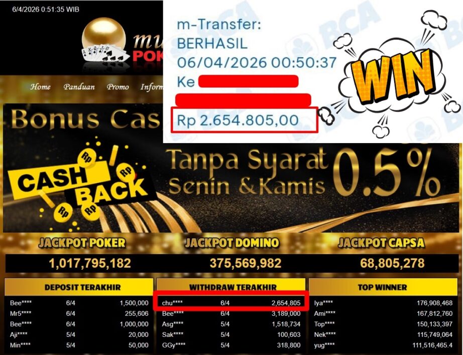 Bukti Withdraw MutiaraPoker