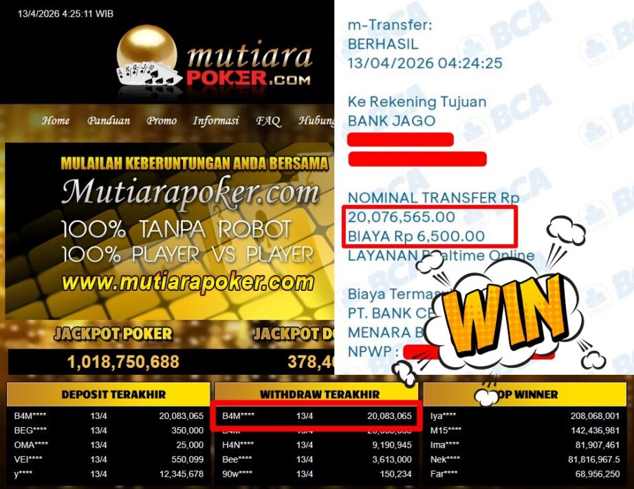 Bukti Withdraw MutiaraPoker