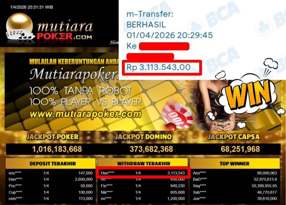 Bukti Withdraw ( 3.113.543,-) Member Setia Mutiarapoker