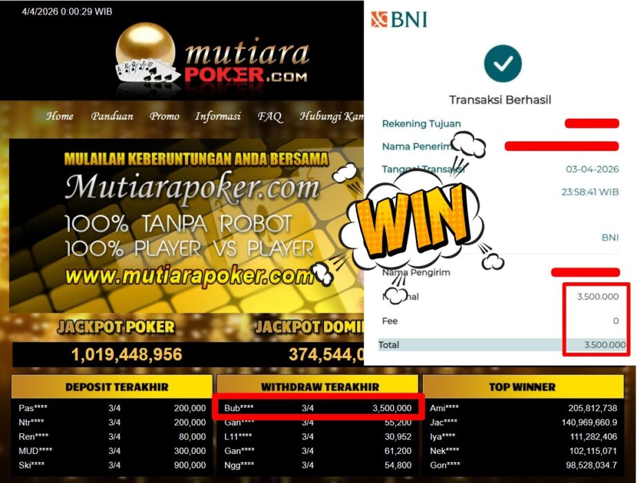 Bukti Withdraw MutiaraPoker