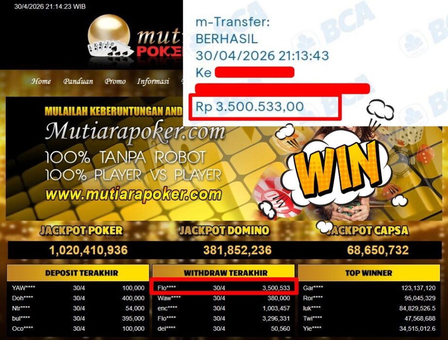 Bukti Withdraw ( 3.500.533,-) Member Setia Mutiarapoker