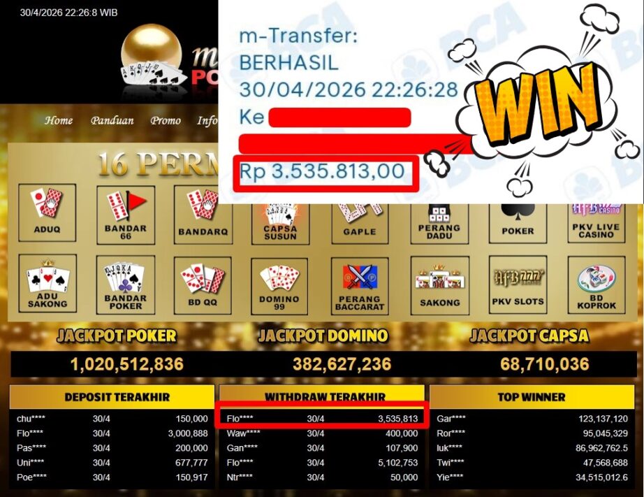 Bukti Withdraw MutiaraPoker