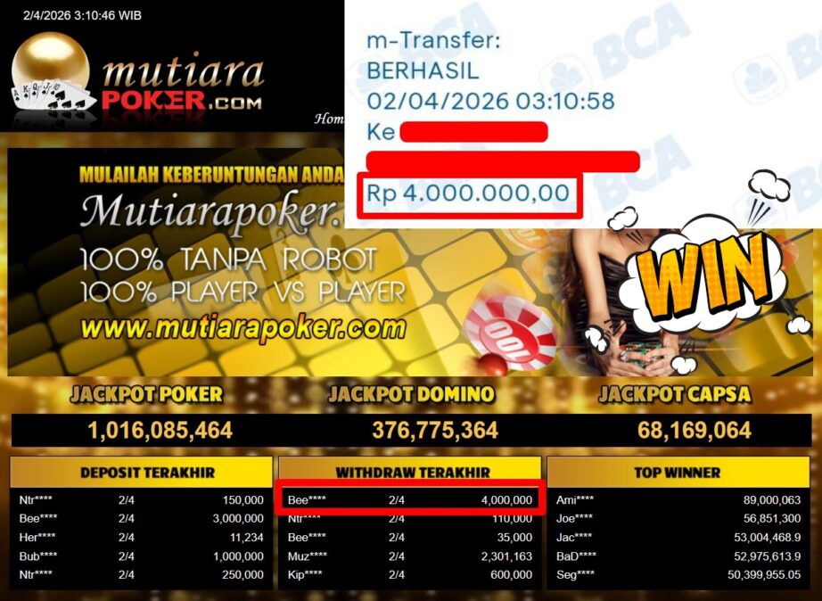 Bukti Withdraw ( 4.000.000,-) Member Setia Mutiarapoker