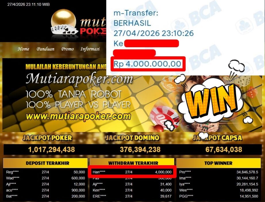 Bukti Withdraw MutiaraPoker