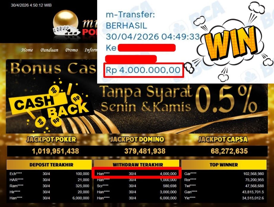 Bukti Withdraw ( 4.000.000,-) Member Setia Mutiarapoker