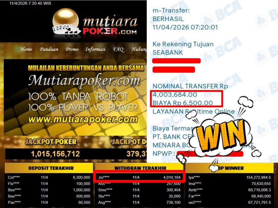 Bukti Withdraw ( 4.010.184,-) Member Setia Mutiarapoker