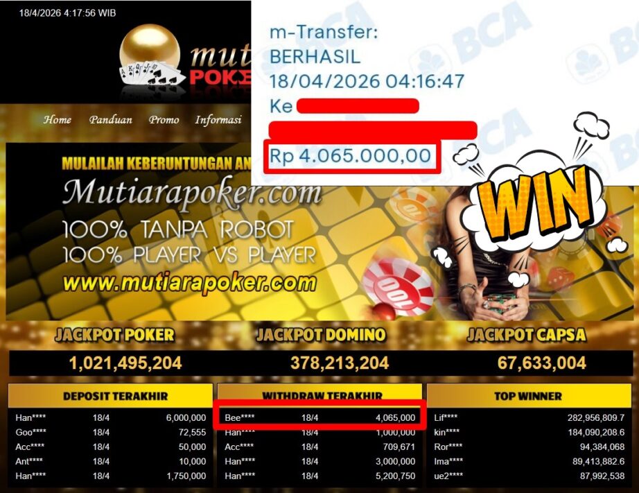 Bukti Withdraw ( 4.065.000,-) Member Setia Mutiarapoker