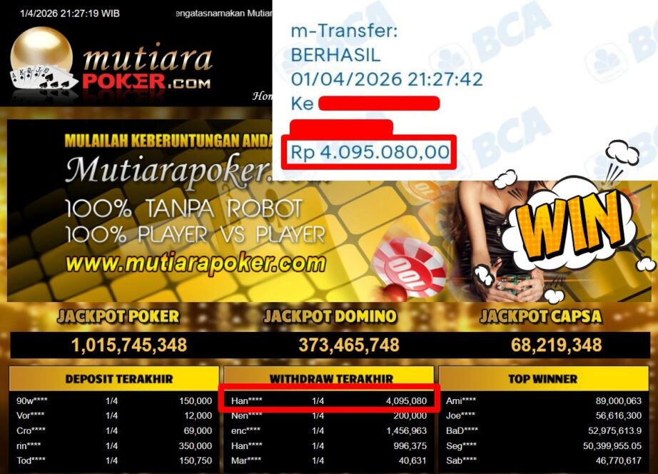 Bukti Withdraw ( 4.095.080,-) Member Setia Mutiarapoker