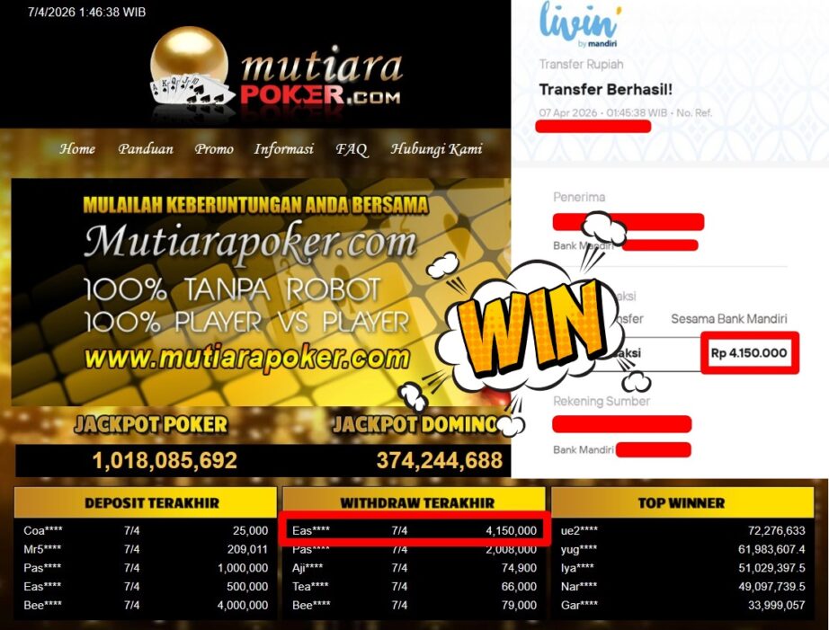 Bukti Withdraw ( 4.150.000,-) Member Setia Mutiarapoker