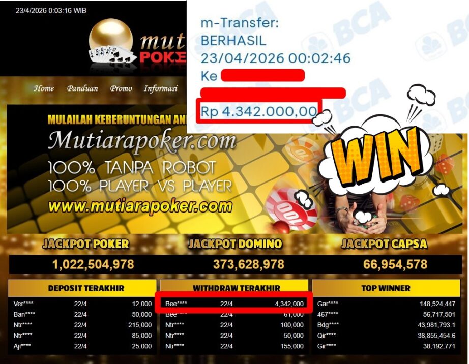 Bukti Withdraw ( 4.342.000,-) Member Setia Mutiarapoker