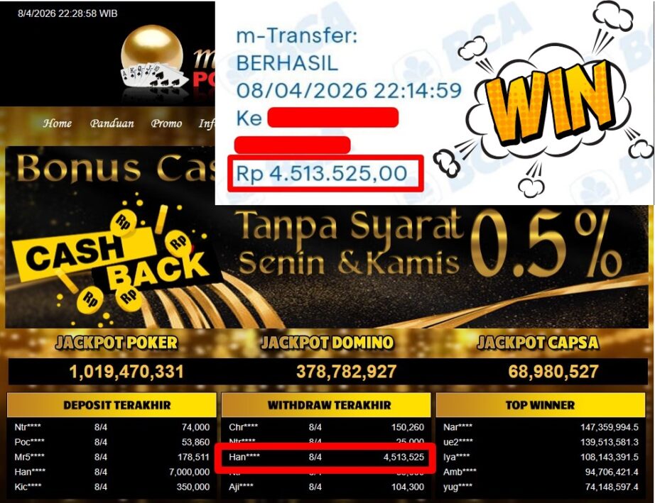 Bukti Withdraw ( 4.513.525,-) Member Setia Mutiarapoker
