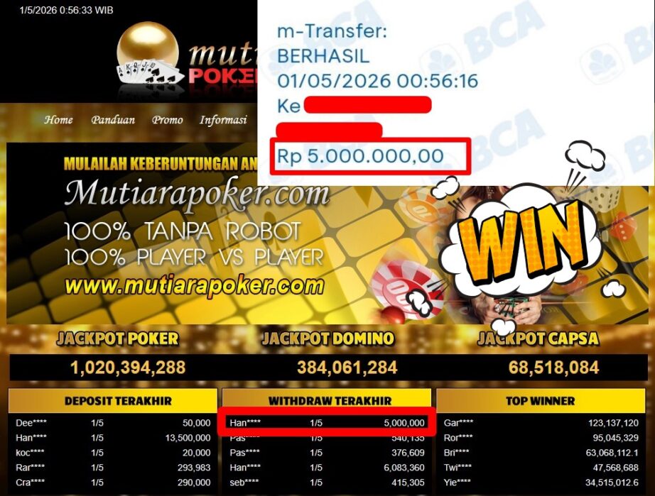 Bukti Withdraw ( 5.000.000,-) Member Setia Mutiarapoker