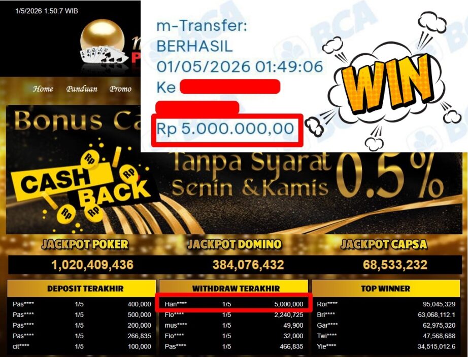 Bukti Withdraw ( 5.000.000,-) Member Setia Mutiarapoker