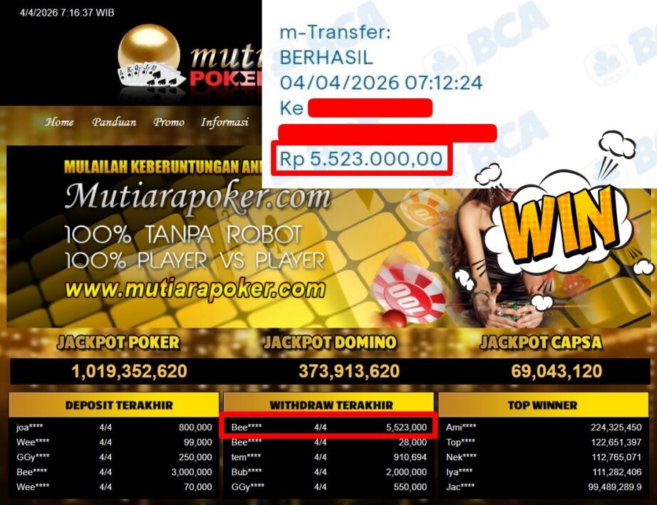 Bukti Withdraw ( 5.523.000,-) Member Setia Mutiarapoker