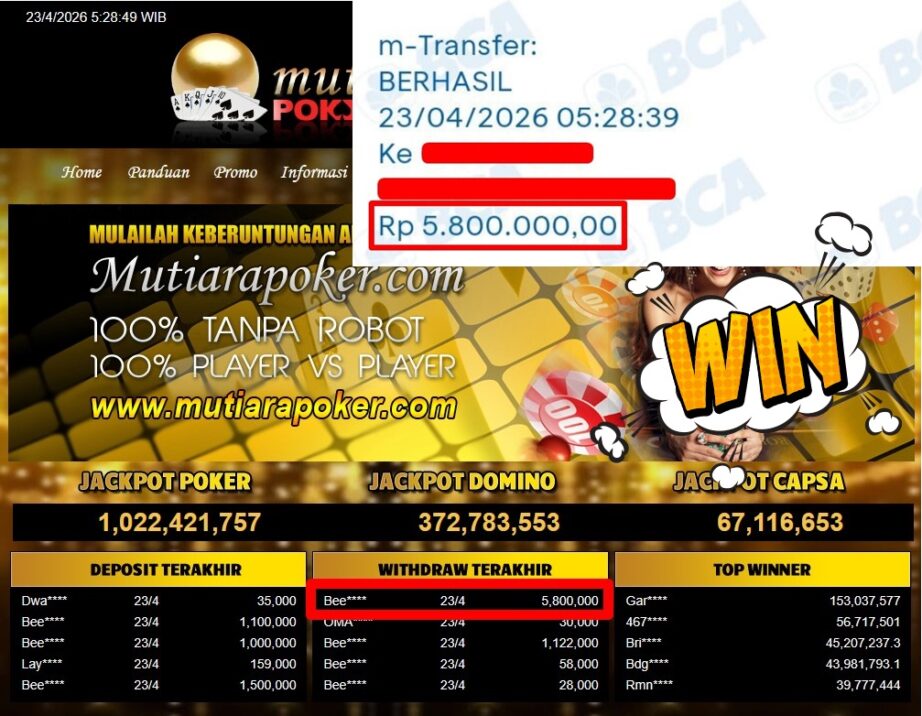 Bukti Withdraw ( 5.800.000,-) Member Setia Mutiarapoker
