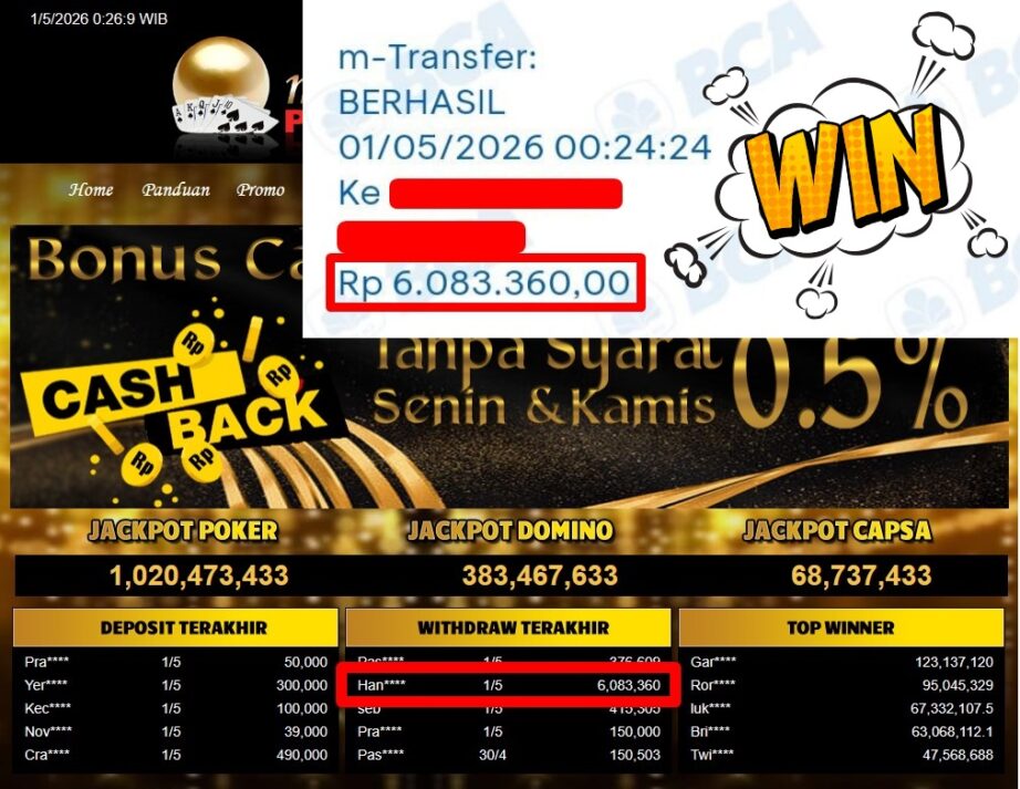 Bukti Withdraw ( 6.083.360,-) Member Setia Mutiarapoker