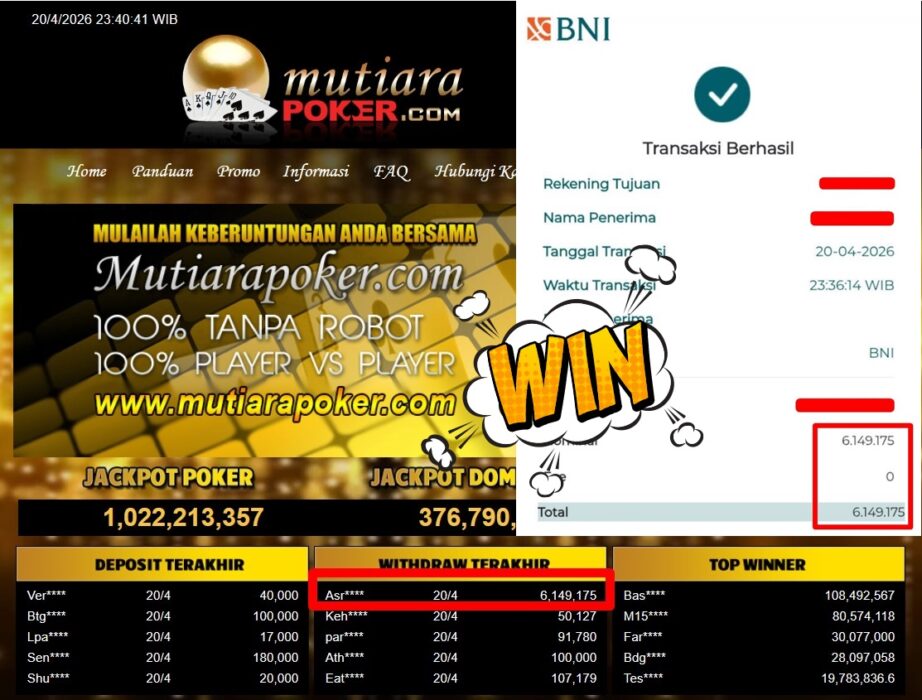 Bukti Withdraw MutiaraPoker