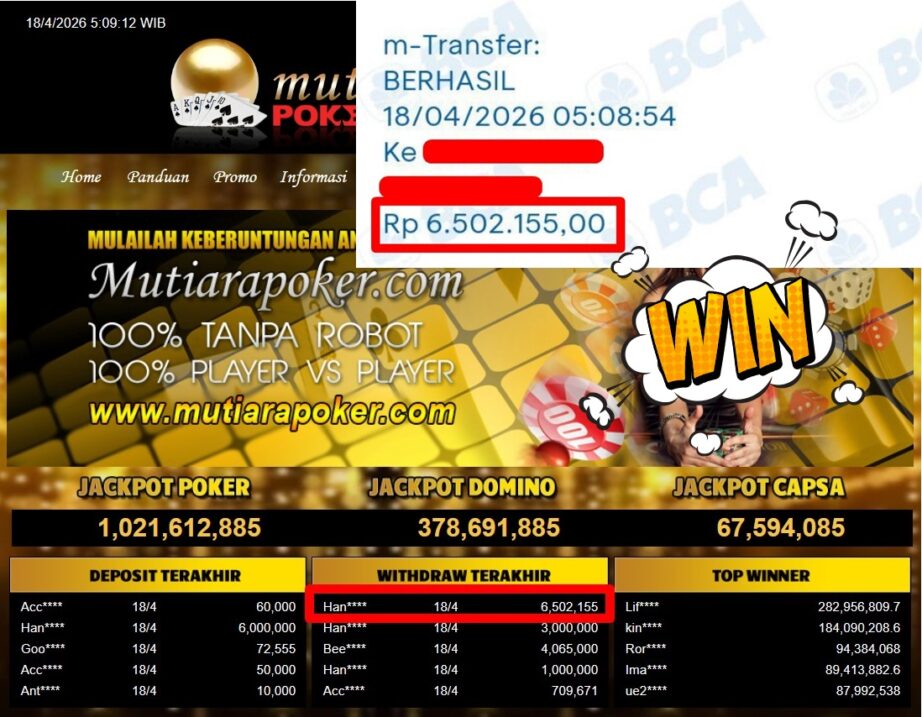 Bukti Withdraw ( 6.502.155,-) Member Setia Mutiarapoker