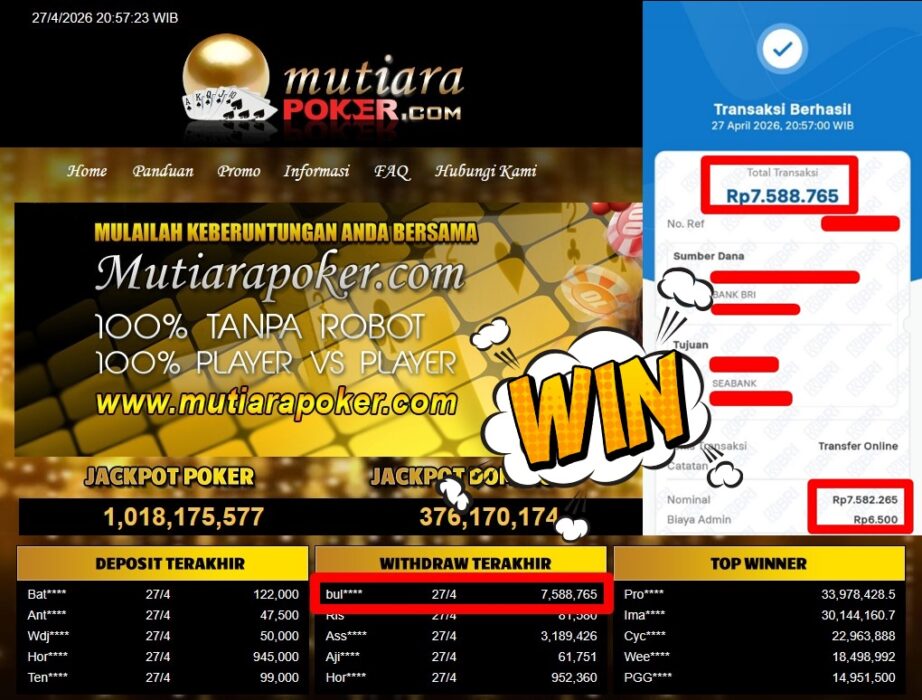 Bukti Withdraw ( 7.588.765,-) Member Setia Mutiarapoker