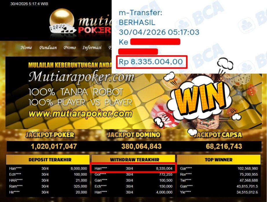 • Bukti Withdraw ( 8.335.004,-) Member Setia Mutiarapoker